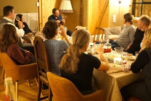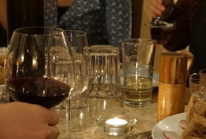 Ein Mehrgängemenü mit Wein und Unterhaltung.